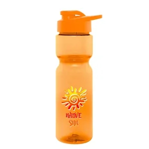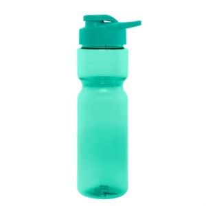 28 oz. sports bottle made of PET material with a screw-on, spill-resistant sip to lid and carry handle.