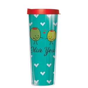 28 oz. polycarbonate double wall travel tumbler with spill resistant slider lid.