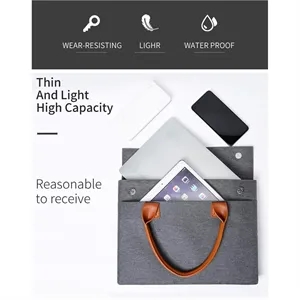 Water-resistant laptop bag with magnetic cover, slim design, and ample storage for accessories. Rush service is available.