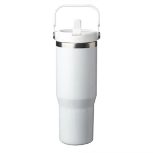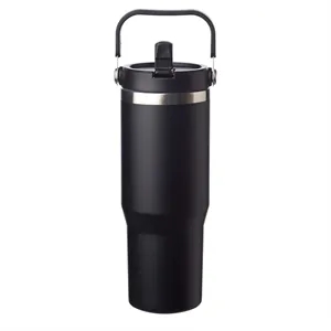 Screw On Plastic Lid with Drinking Spout with Straw, Double Wall Stainless Steel & Vacuum Insulated, BPA Free