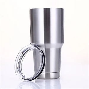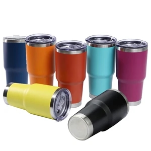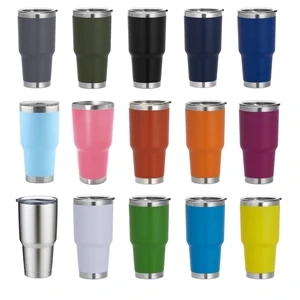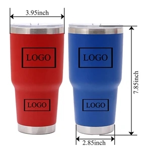 3.95" x 3.95" x 7.85" double wall stainless steel 30 ounce tumbler with lid and straw.