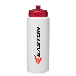 32 oz. sports water bottle made of HDPE plastic with a push-pull lid.