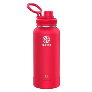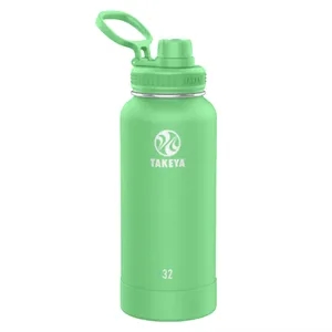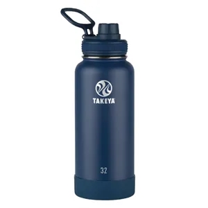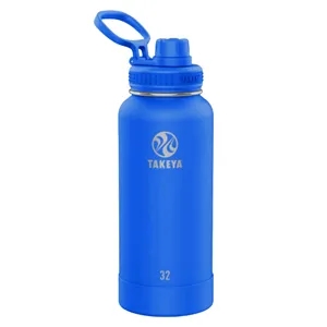 32 oz Takeya® bottle: Leak-proof Spout Lid™ for easy drinking; double-wall design; powder-coated exterior; vacuum insulation
