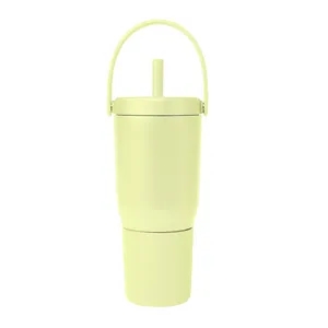 35 oz. powder-coated stainless steel tumbler with straw and carry handle.