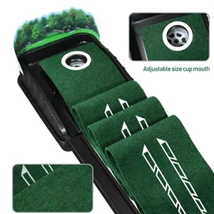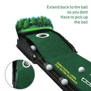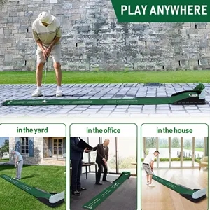 Golf putting mat with auto ball return, distance markers & guides. Great for home or office use. Custom logo available.