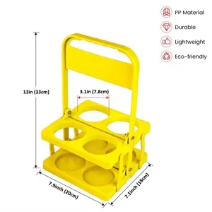 Portable Plastic Drink Carrier, Reusable Beer Bottle Coffee Cup Holder, Drink Caddy for Delivery, 4 Holes Cup Holders with Handle
