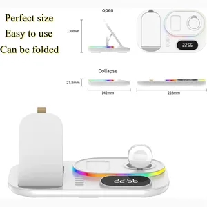 Wireless Charger Station Foldable 4 in 1 30W Fast Charging with digital clock for Phone