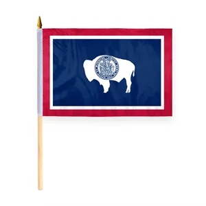 Wyoming's white bison seal in 1-ply poly - 4"x6" or 12"x18" flags great for exhibits, outdoor events, or state pride.