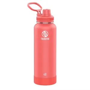 40 oz Takeya® bottle: Leak-proof Insulated Spout Lid™ for controlled drinking; double-wall design; powder-coated exterior; vacuum!