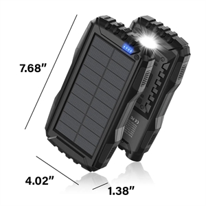 Solar powered power bank with charger and built-in flashlight.