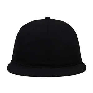 5-panel flat bill snapback cap with Taslan fabric, mesh support, performance sweatband, and adjustable snapback closure.