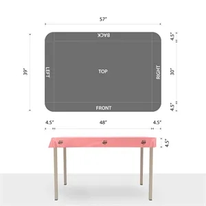 57" x 39" custom plastic rectangular table cover; 4 sided with a 4.5" drop and made for a 4' table.