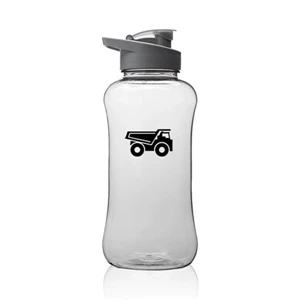 60 oz. plastic sports bottle with flip top lid, handle, wide mouth and translucent color finish.