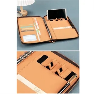 PU Leather Zipper Binder Notebook With Refillable Pages. Perfect For School, Office, Travel, And Corporate Promotions.