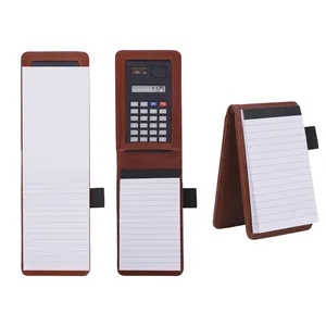 Portable A7 notebook with calculator and pen holder, PU leather, Pocket size memo pad, Multifunctional, Rush service is available.
