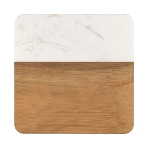 4" square beverage coaster made of beautiful acacia wood and marble slate stone.