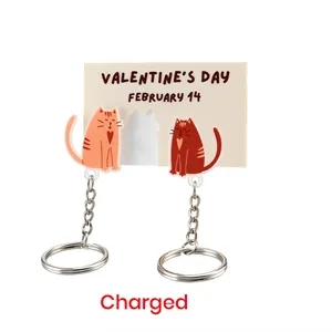 This custom UV printed acrylic couple keychain features an adhesive back for easy display.