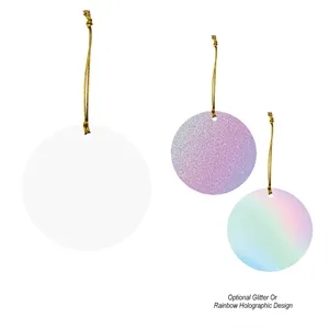 Round acrylic Christmas ornament with string for hanging.