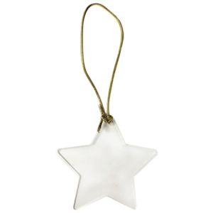 Acrylic star ornament for hanging on a tree during the holidays.
