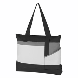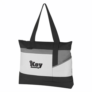 Advantage Tote Bag. Made of 600 Denier Polyester. Outside Pocket. Top zippered Closure. Pen Loop. 22" Handles.