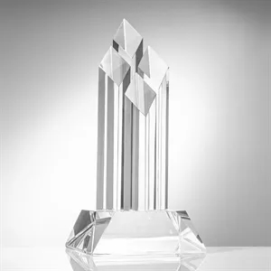 Four beautiful pillars of optical crystal on a thick matching optical base.