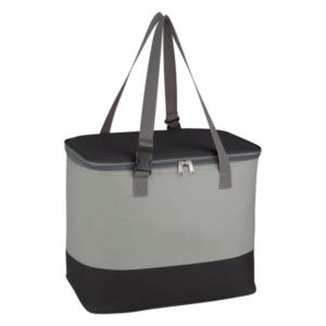 Polyester cooler bag with foam insulation, zippered main compartment and 22" carrying handles that convert into a 44" strap.