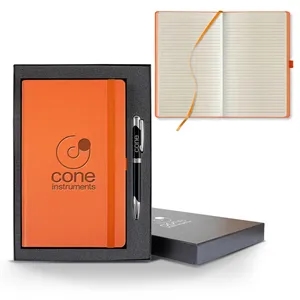 Methods: Foil Stamp - Book Front Cover, Foil Stamp - Box Lid, Deboss - Book Front Cover, Laser - Pen Lower Barrel, 4 Color Process - Book Front Cover, Laser - Pen Upper Barrel, Foil Stamp - Book Back Cover, Deboss - Book Back Cover, 4 Color Process - Book Back Cover, 4 Color Process - Box Lid