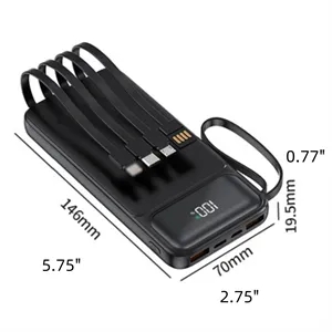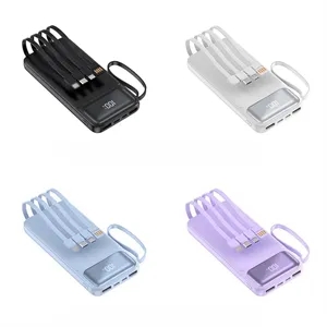Portable 10000mAh Power Bank With Pd 22.5w Fast Charging, Built-In 4 Cables, Led Display, And Carry Strap. Compact For Travel Use.