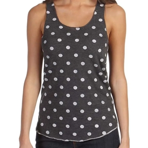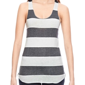 Ladies' racer tank with a rounded bottom, merrowed hem, and contemporary fit.