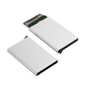 3.74" x 2.36" x 0.35" aluminum alloy card wallet with RFID protection.