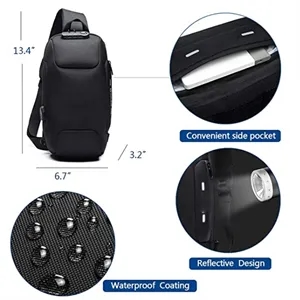 Anti Theft Sling Bag Shoulder Crossbody Backpack Waterproof Chest Bag with USB Charging Port Lightweight Casual Daypack