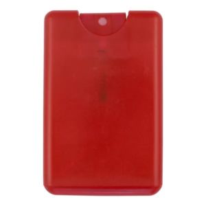 Credit card shaped spray bottle filled with 20 ml of citrus scented antibacterial spray.