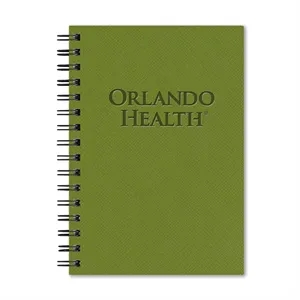 5 1/2" x 8" apple pulp planner with an eco-peel cover and black wire.
