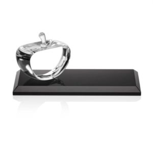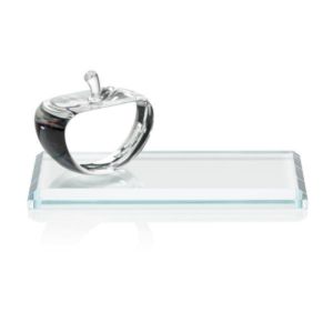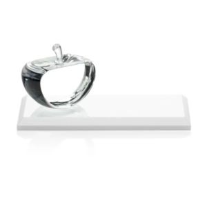 Clear cut faced Argyle apple mounted on colored crystal base or rosewood Albion base