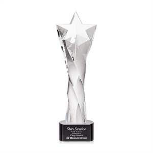 Recognize a star with the Arlington Star Award on base. This twisting tall Optical Crystal tower features a star at the top.