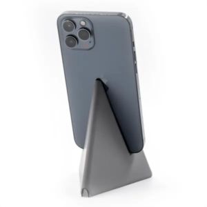Synthetic leather tablet and phone stand with magnetic/foldable design.