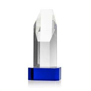 The Ashford Award is a stunning thick Optical Crystal Polygon Tower with a slanted top and Blue base