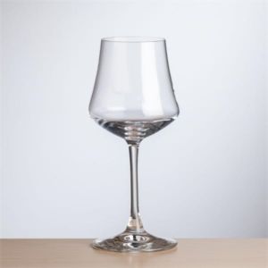The Atlantis Lead Free Crystalline collection features a waisted bowl that tappers up to a wide mouth.
