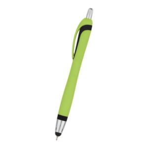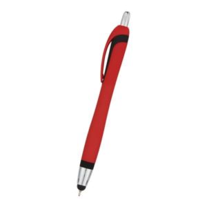 Ava Sleek Write Pen with Stylus. Plunger Action. Push Down to Use Pen and Retract to Use Stylus. Rubberized Finish.