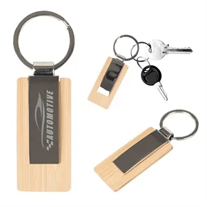 Bamboo key tag with a split ring attachment.