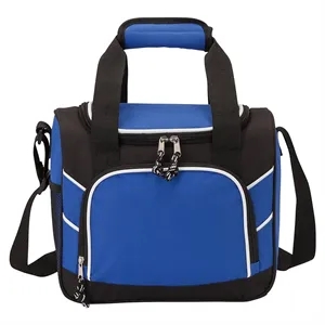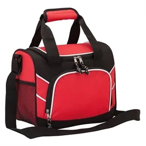 20-can lunch bag cooler with PEVA lining; includes 1 1/2" x 49" adjustable shoulder strap.