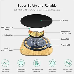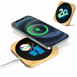 Light-Up Bamboo Wireless Charger, 15W Fast Wireless Charging Pad, Round & Square, Customized LED Logo for Light Up Your Brand