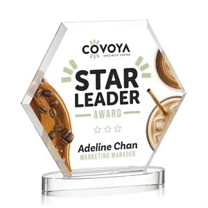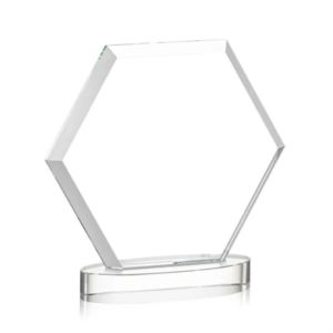 The Barnett VividPrint™ Award features a beautifully beveled Starfire Crystal Hexagon mounted on an oval Alberton base.