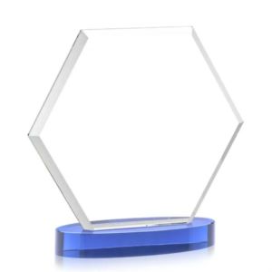 The Barnett VividPrint™ Award features a beautifully beveled Starfire Crystal Hexagon mounted on an oval Alberton base.