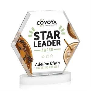 The Barnett VividPrint™ Award features a beautifully beveled Starfire Crystal Hexagon mounted on an oval Alberton base.