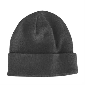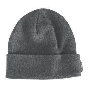 Ribbed knit moisture-wicking hat made from acrylic yarn with polyester lining.