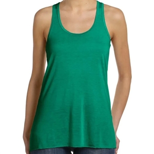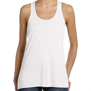 Ladies' tank with a merrowed bottom hem and drapey fit.