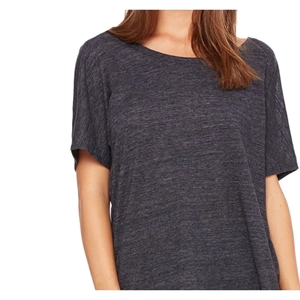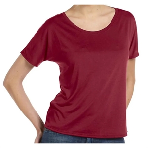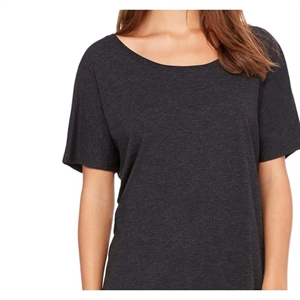 Ladies' t-shirt with a curved bottom hem, scoop neck, and side-seaming.
