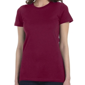 Ladies' t-shirt with a retail fit, side-seaming, and fitted sleeves.