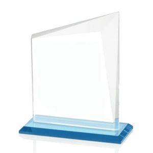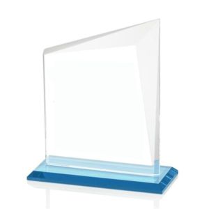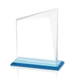 A gorgeous panel of Starfire glass with a sky blue base and striking bevel framing its peaked edge.